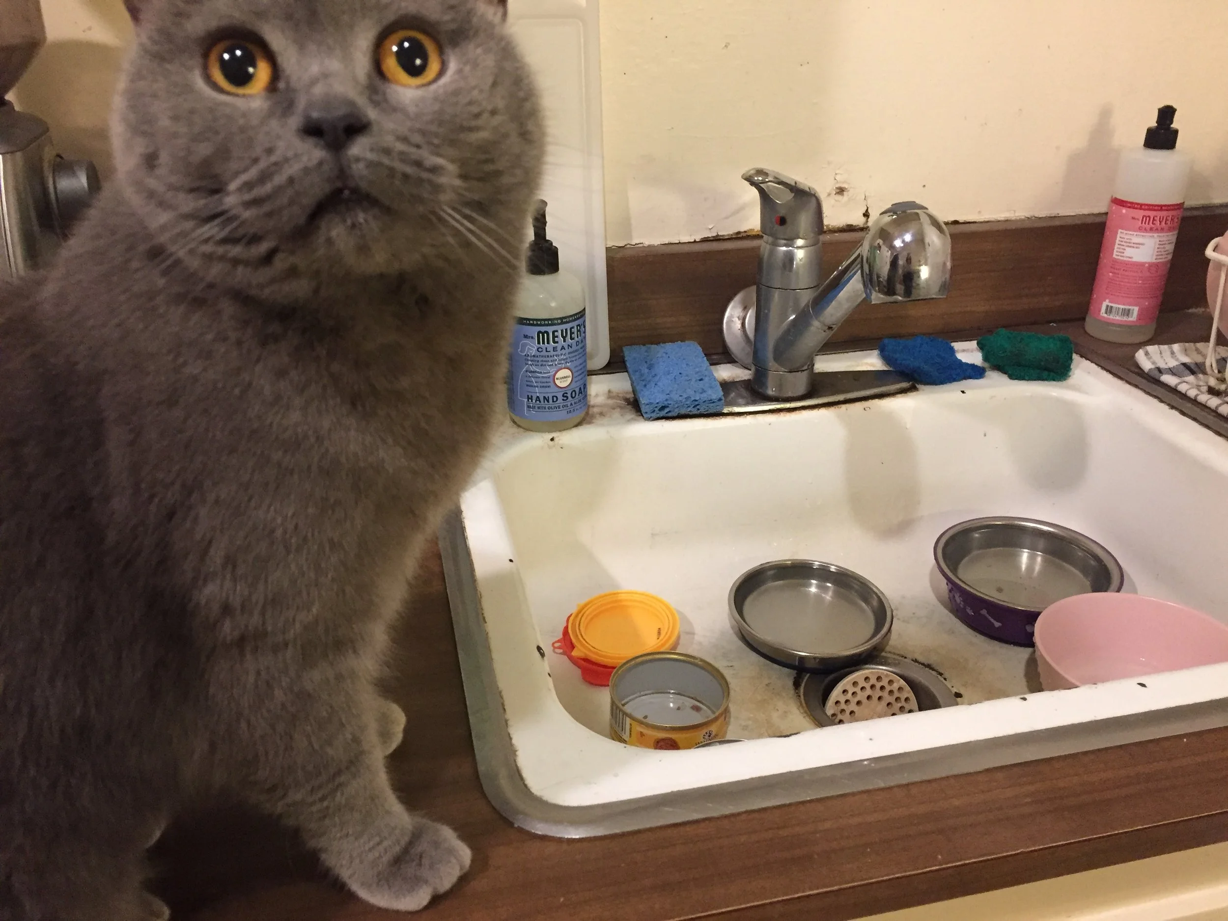 After he was done eating, he demanded that we fill his food bowl with water. We called this dish “meat water”. We assumed he liked that food scraps were flavoring the water a wee bit. Until shortly before he died, we would serve his meat water in the sink.